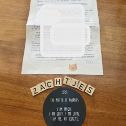 Voor €50 ontvang je vier maanden lang persoonlijke woorden, symbolische cadeautjes en mini-verrassingen in je brievenbus. Iedere maand iets om naar uit te kijken.